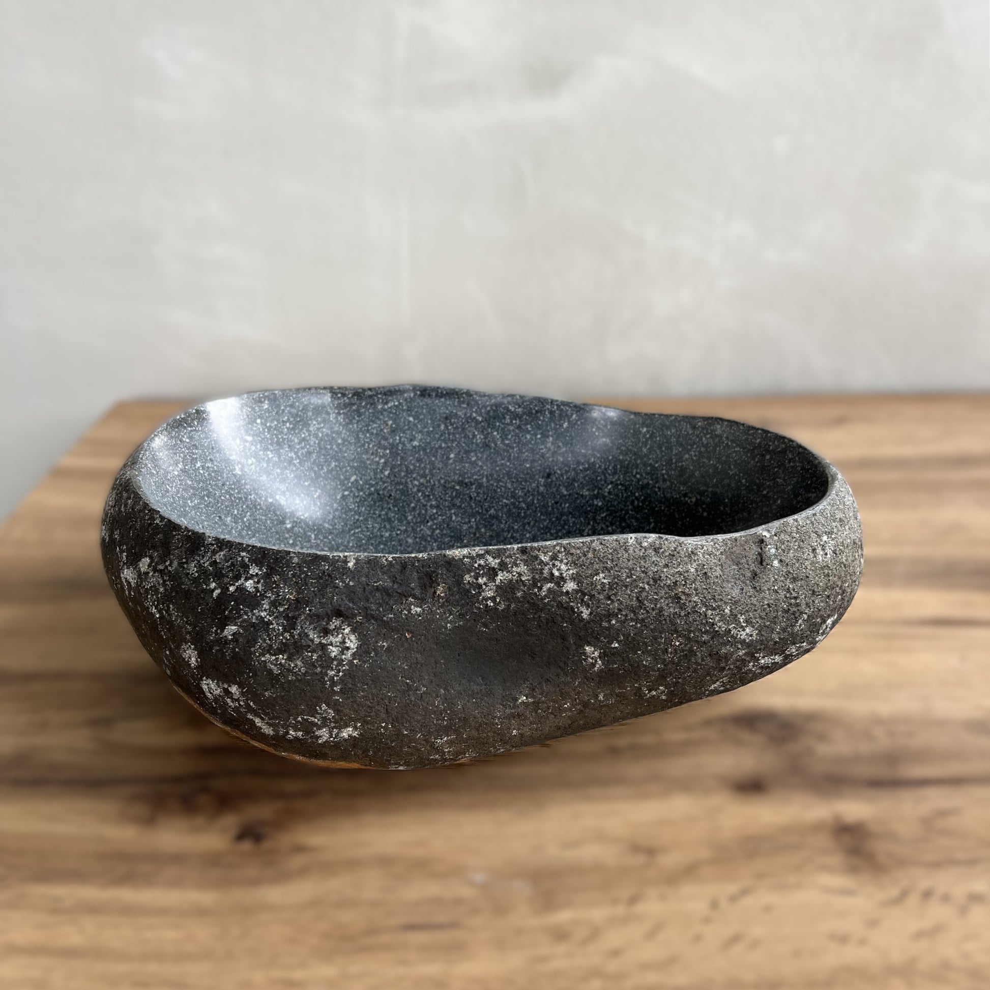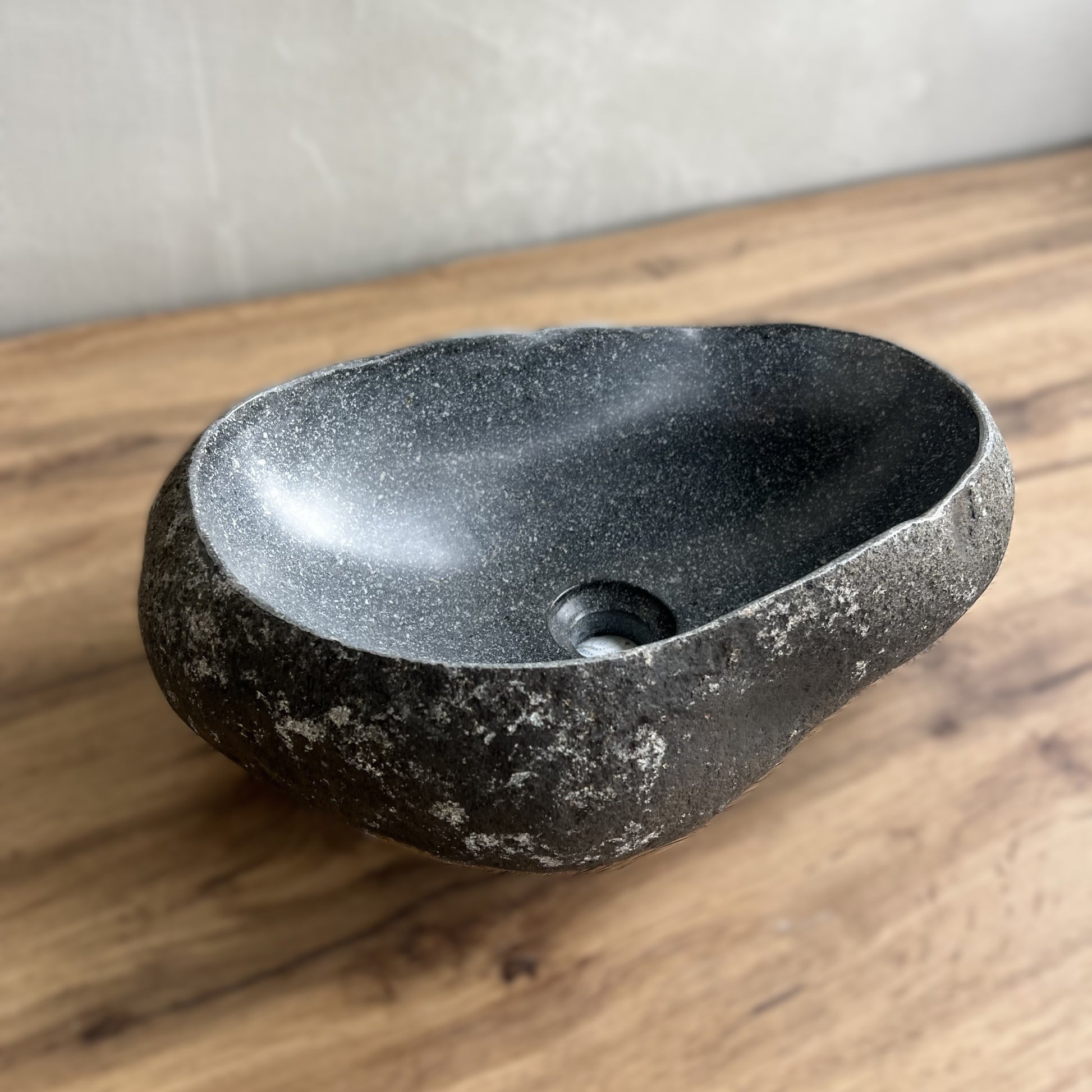 Spalva -pilkas upės akmuo.
